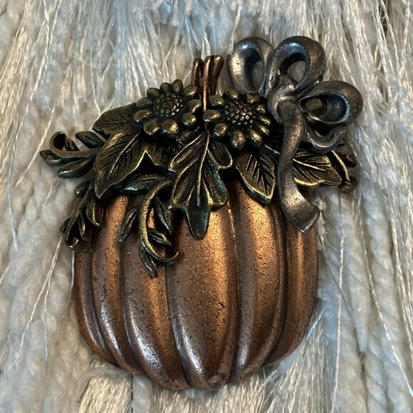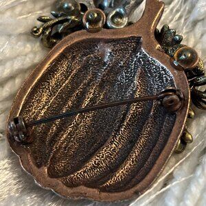 Antique Copper, Pewter, Brass Pumpkin Brooch Pin 2"