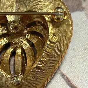 Vintage Estate Signed Napier Gold Loving Heart Ruby Red Rhinestone Pin Brooch