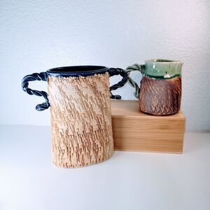 Add a touch of artistic elegance to your home with this vintage Esteban Apodaca studio art pottery set. This set includes a beautiful pitcher and a matching vase, both showcasing stunning textures and unique designs.