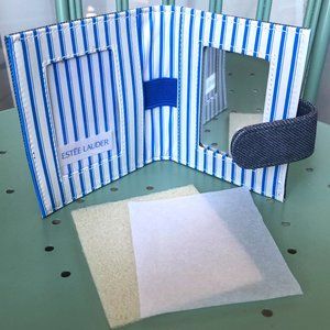 Vintage Estee Lauder Cream, Denim Blue and Striped Beach Tote Bag & ID Case - never been used and comes with original packaging. Inside is striped blue and white waterproof lining. ID case has a mirror on one side and a slot for ID. NWOT