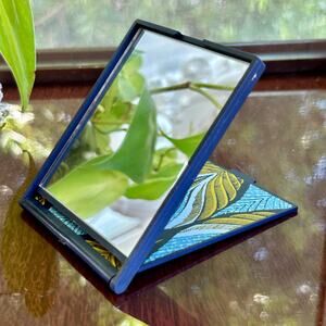 Vintage Estee Lauder Blue Feather Pattern Small Makeup / Cosmetic Folding Mirror
