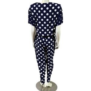 Vintage Et Al Polka Dot Crop Top & High Waist Pants Set Navy/White/Red Size 10