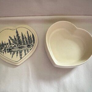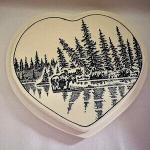 Vintage Etched Bear Cub Heart Shaped Trinket Box