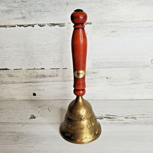 Vintage Etched Brass Hand Bell Wood Handle India - School, Teacher, Call Service