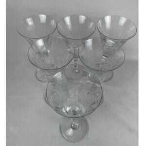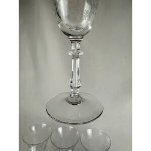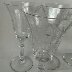 Vintage Etched Crystal Flower Wine Glasses Water Goblets Set Of 6