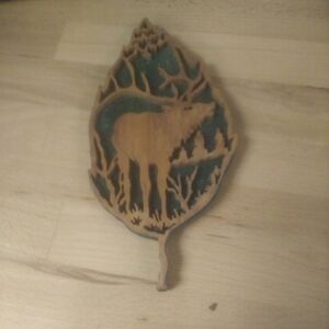Lovely wooden trivet featuring a deer. The wood is etched or cut out...not certain.