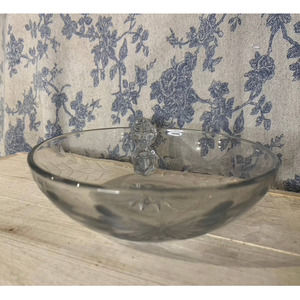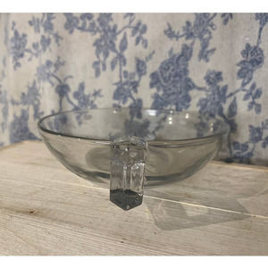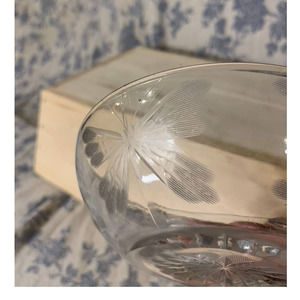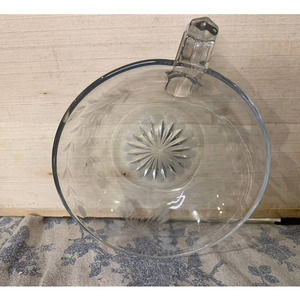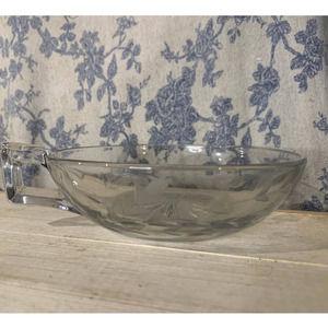 Vintage Etched Glass Butterfly Flowers Nappy Bowl with Handle