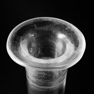 There are a few light, smooth chips on the stopper. Some water spots inside.