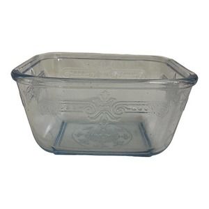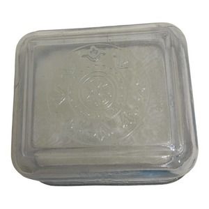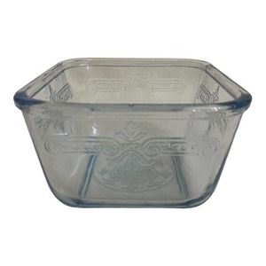 Vintage ~Etched Glass Fire King Refrigerator Dish 5”X 4.5”.
