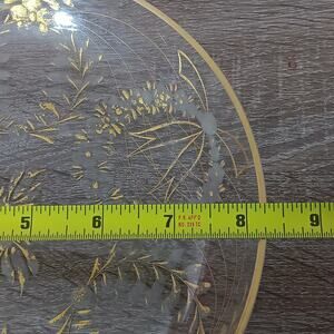 Vintage Etched Glass Platter Gold Wreaths and Bows 8.25" diameter 1.5" tall