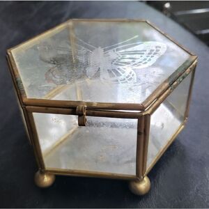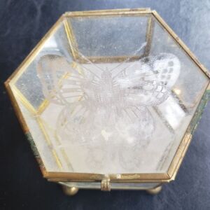 Vintage Etched Glass Box w/Butterfly