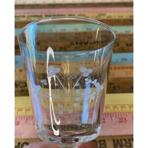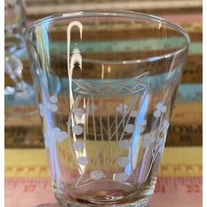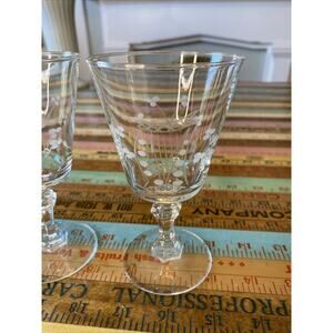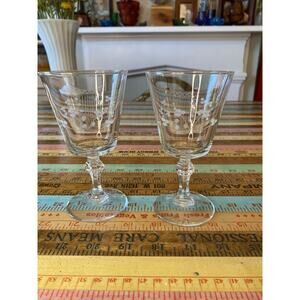 Vintage Etched Harp Design Crystal Wine Glass Stemmed Set of 2 Mid Century 5"T