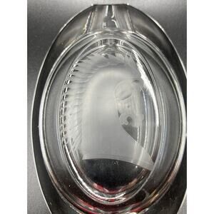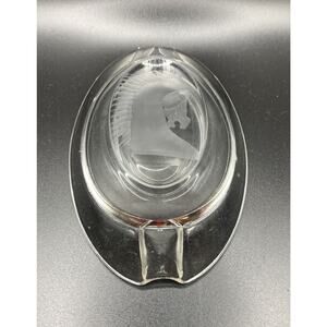 Vintage Etched Horse Bust 5” Oval Clear Glass 2 Rest Ashtray Read