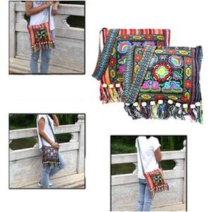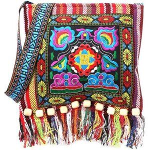 Vintage Ethnic Tribal Embroidered Tassel Sling Crossbody Boho Hippie ShoulderBag
