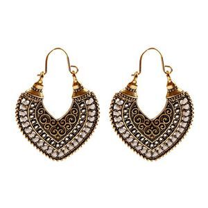Vintage antique Ethnic retro Elegant Heart-shaped Oorbellen alloy Broncos Metal Hollow punk Geometric Carved dangle bohemian tribal crochet hoop Earring Jewelry