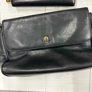 Vintage Etienne Aigner Black Cowhide Leather Crossbody Bag Purse & Wallet