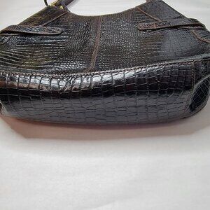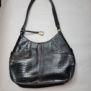 Vintage Etienne Aigner Black Embossed Leather Hobo Bag | Gold Buckle Accents