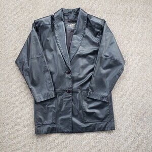 Vintage Etienne Aigner Black Leather Car Coat Women's Medium