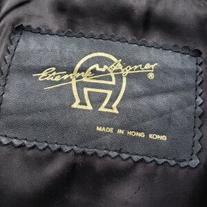 Vintage black leather car coat from Etienne Aigner. In very good preowned condition. Made in Hong Kong.