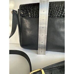 Vintage Etienne Aigner Flap Sling Bag Croc Embossed Black Leather 80s 90s Preppy