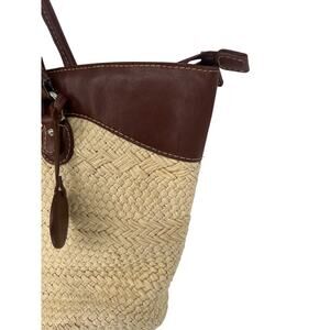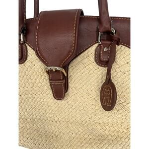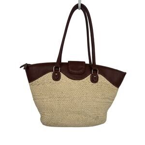 Vintage Etienne Aigner Purse Brown Straw Leather Shoulder Bag 19x11x5 Tote Rare