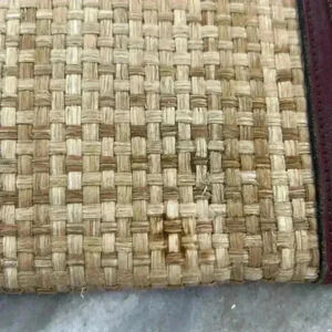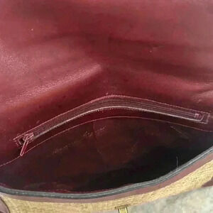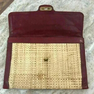 Straw Clutch Envelope Bag with Burgundy Oxford Leather Trim