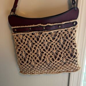 Vintage Etienne Aigner Woven Bag with Burgundy Leather Accents