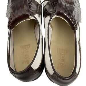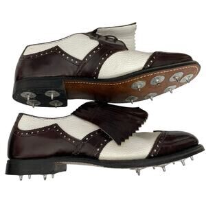 Vintage Etonic Wingtip Golf Shoes Men 11.5 D Metal Spikes Leather Brown White