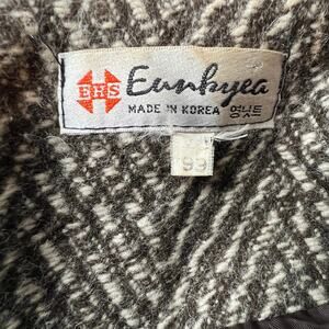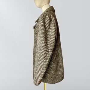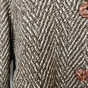 Vintage Eunkyea Brown & Tan Herringbone Pattern Wool Blend Button Up Coat