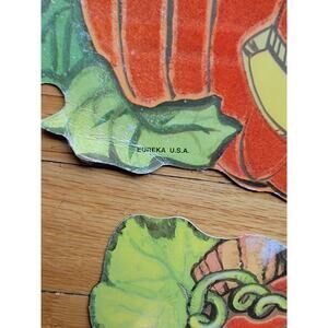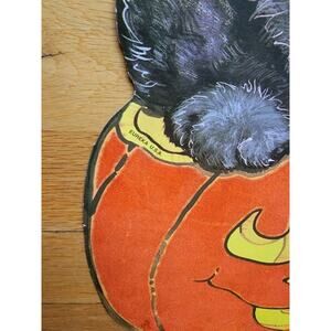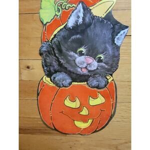 Vintage Eureka Halloween Die Cut Double Sided Flocked Pumpkins Kitten Owl Lot 2 please see all photos does have some wear ans putty on the non Flocked side