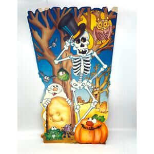 Vintage Eureka USA Halloween Die Cut Skeleton Ghost Pumpkin Cemetery Spider Owl Double Sided 20.5"x11"