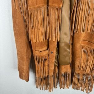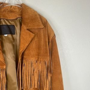 Vintage Euro Women's Fringe Leather Jacket Long Sleeve Terracotta Size S