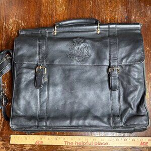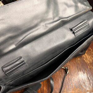Vintage Eurodesign Black Leather Portfolio Bag With Shoulder Strap & Buckle Clos