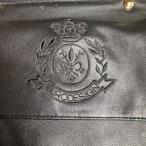 Light wear on leather with minor scratches. MIssing a loop for shoulder strap. Measurements: approximately 16.5 inches wide, 13 inches tall.