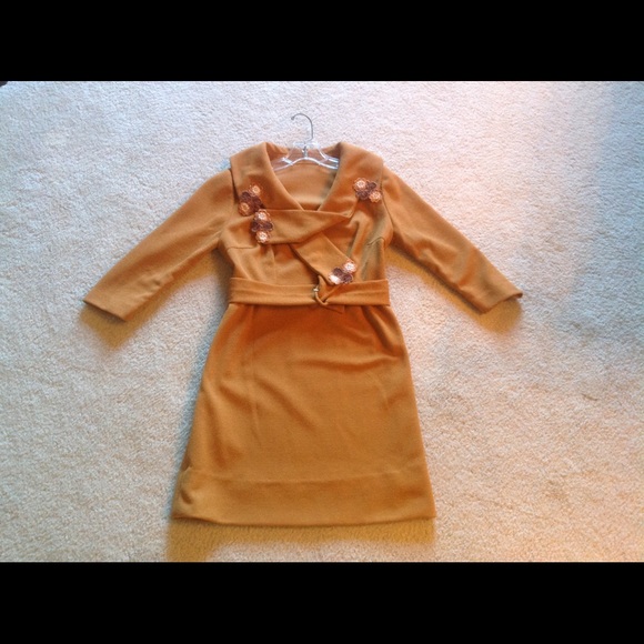 Fabulous Vintage piece straight from Europe. It is beautiful Caramel color with amazing attention to details - see pics. A one of a kind. 3/4 sleeve. Comes just to the knees. Size 6.