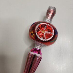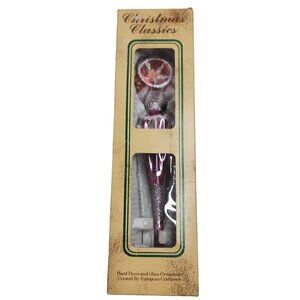 Vintage European Christmas Classic Long Hand Decorated Glass Ornament with Box
