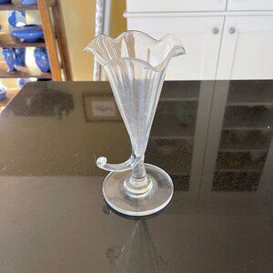 This is most likely an Italian piece with the pontil on the bottom. It is so finely detailed with the fluted top and the bottom stem curved. No chips or cracks. The period is art nouveau and might even be done in the 1920's.
