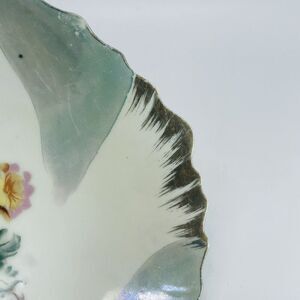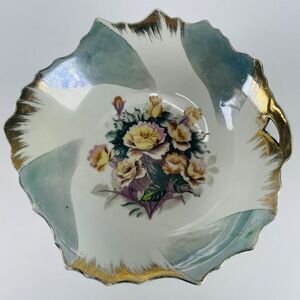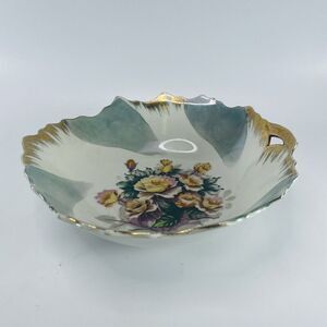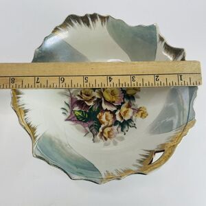 No chips, cracks or breaks. Gold trim shows common signs of wear and scratching as pictured. Measures 8 inches across. Please see all pictures. Vintage European Fine China Bowl One Handle Flowers Roses Gold Irregular Rim 8in