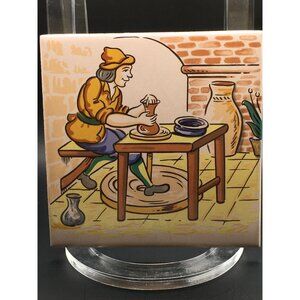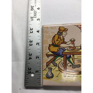 Vintage European Folk Art Tile Wall Plaque Hand Painted Home Decor 4.5''x4.5''