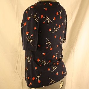 Vintage Navy/Red/Cream Eva for Robert Janan Neiman Marcus Short Sleeve V-Neck Floral Shirt