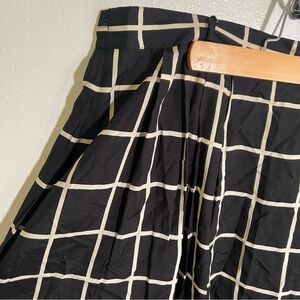 Good vintage condition, has soe spots as shown. Vintage. Evan picone. A-line skirt. Black with white window pane plaid pattern. Pockets. Elastic in back of waist, side hook closure. Size 10. 100% rayon. Waist 16” waist to hem 29”. All measurements are approximate and taken lying flat. Smoke free home. No trades, offers welcome.