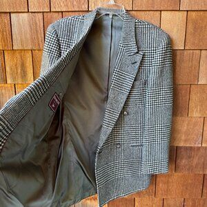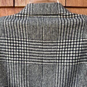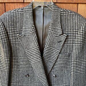 Vintage Evan Picone Black and Cream Plaid Wool Double Breasted Blazer in Large