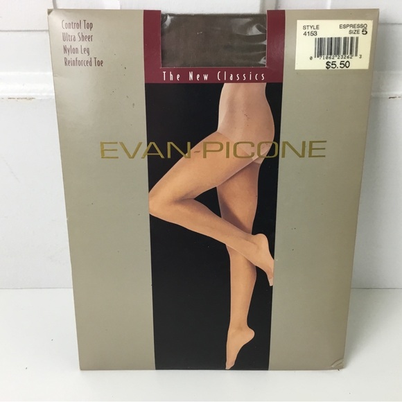 Vintage Evan Picone Control Top Sheer Pantyhose Espresso Brown Plus Size