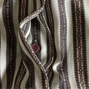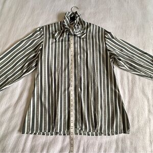 Vintage Evan Picone Shirt Womens 8 Tan Black and Green Striped Bow Blouse Long Sleeve 70s Old Money Office
