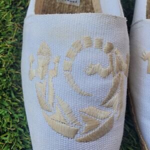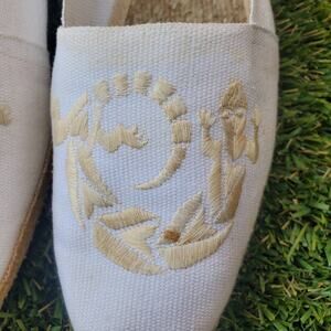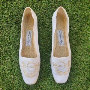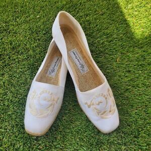 Vintage Evan Picone White Canvas Embroidered Lizard Espadrille Alpargata Flats