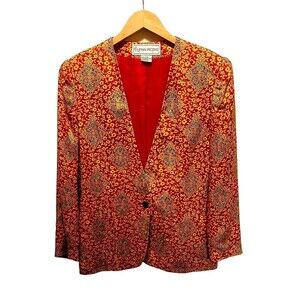 Vintage Evan Picone Women’s Red Empire Print Single Button Blazer Jacket Size 12
