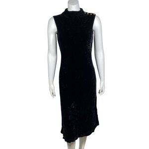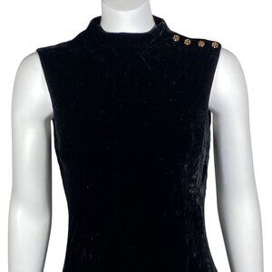 Vintage Evan-Picone Black Velvet Sleeveless Midi Dress Size 8 Button Details