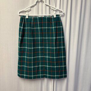 Vintage Evan-Picone Green Plaid Wool Skirt Womens Size 14 Fringe Classic Western