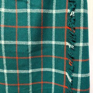 This vintage Evan-Picone skirt offers timeless style with its classic green plaid design. Material tag removed. My guess is this is a wool blend. It includes an elegant fringe detail and is union-made.