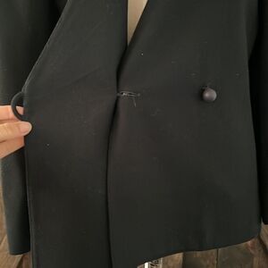 Vintage both sleeve shows some small holes tear on sleeves bottom cuff sleeves 1 more than other please see picts , had shoulder pads it’s vintage nice jacket coat